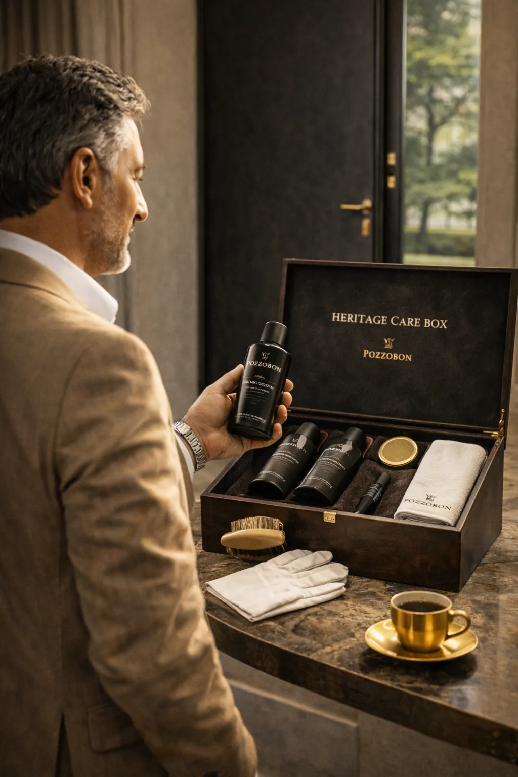 Per preservare l'estetica tattile della tua finitura materica, ti consegneremo l'esclusivo kit di mantenimento Pozzobon. Una dotazione professionale studiata per rigenerare le superfici e proteggere la bellezza del tuo monolite, mantenendolo inalterato come nel giorno della sua creazione